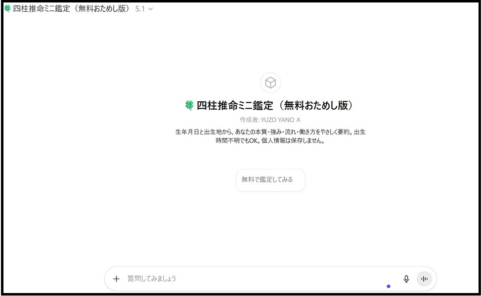 ① 無料版:四柱推命ミニ鑑定GPT(まずはここから)